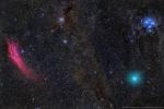 Red Nebula, Green Comet, Blue Stars