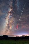 Perseid Meteor, Red Sprites, and Nova RS Ophiuchus