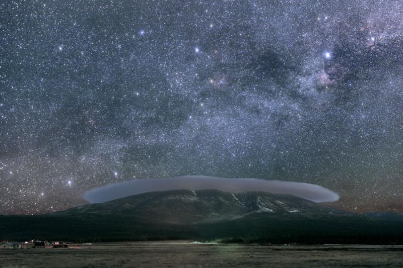 Explanation: This sky is protected. Yesterday marked the 50 year anniversary of the first lighting ordinance ever enacted, which restricted searchlight advertisements from sweeping the night skies above Flagstaff, Arizona, USA. Flagstaff now enjoys the status of being the first International Dark Sky City, and maintains a lighting code that limits lights from polluting this majestic nighttime view. The current dark skies over Flagstaff not only enable local astronomers to decode the universe but allow local sky enthusiasts to see and enjoy a tapestry contemplated previously by every human generation. The above image, pointing just east of north, was taken two weeks ago at 3 am from Fort Valley, only 10 kilometers from central Flagstaff. Visible in the above spectacular panorama are the San Francisco Peaks caped by a lenticular cloud. Far in the distance, the plane of the Milky Way Galaxy arcs diagonally from the lower left to the upper right, highlighted by the constellations of Cassiopeia, Cepheus, and Cygnus. On the far right, the North America Nebula is visible just under the very bright star Deneb. digg_url = 'http://apod.nasa.gov/apod/ap080416.html'; digg_skin = 'compact';