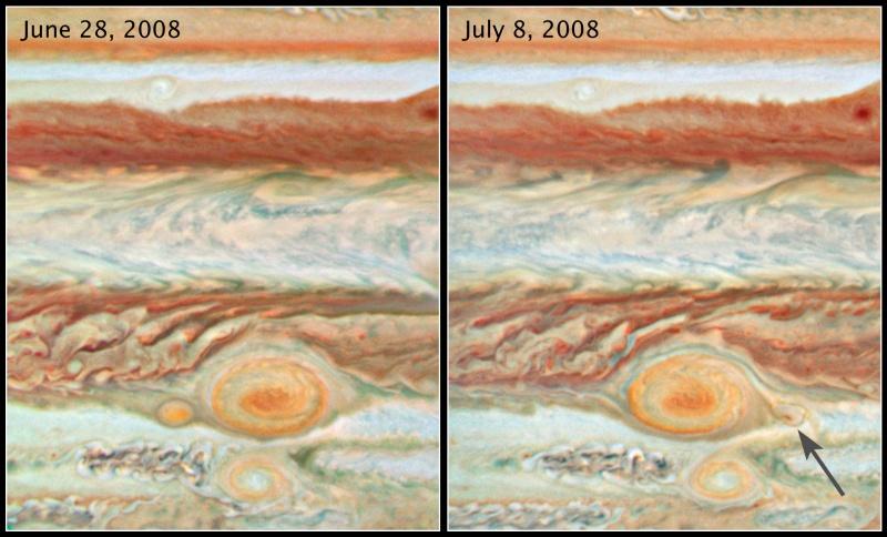the smaller "Red Spot Jr." (bottom), and smaller still,