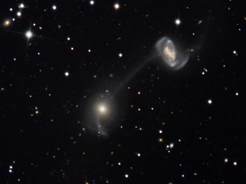 debris trail that joins them, along with NGC 5218's comma-shaped