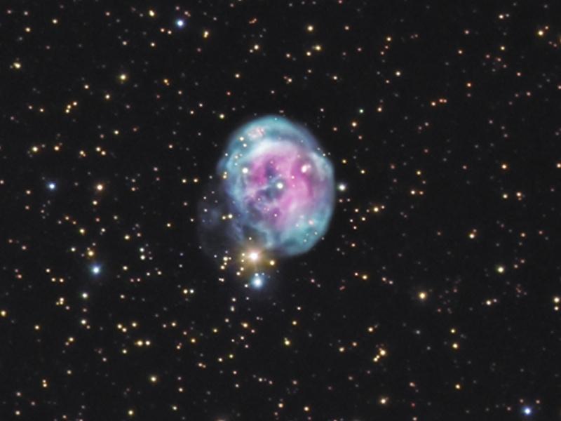 Explanation: Compact and round, NGC 7008 is recognized as a planetary nebula about 2,800 light-years distant in the nebula rich constellation of Cygnus. This impressive telescopic view shows off NGC 7008's remarkable colors and details by the skillfull combination of broad band and narrow band images from two different telescopes with about 12 hours of total exposure time. The intriguing assortment of features within the nebula's approximately 1 light-year diameter suggest its popular name, the Fetus Nebula, but planetary nebulae are not associated with star birth. Instead, nebulae like NGC 7008 are produced during a brief phase that sun-like stars pass through toward the end of their lives. Ejecting their outer layers, the stars cool to eventually become white dwarf stars, like the star seen near the center of NGC 7008. This colorful image also includes an unrelated but still lovely gold and blue binary star system just below NGC 7008. digg_url = 'http://apod.nasa.gov/apod/ap080825.html'; digg_skin = 'compact'; Announcement: APOD Editor RJN to open Final Frontier art exhibit in Ireland on August 28