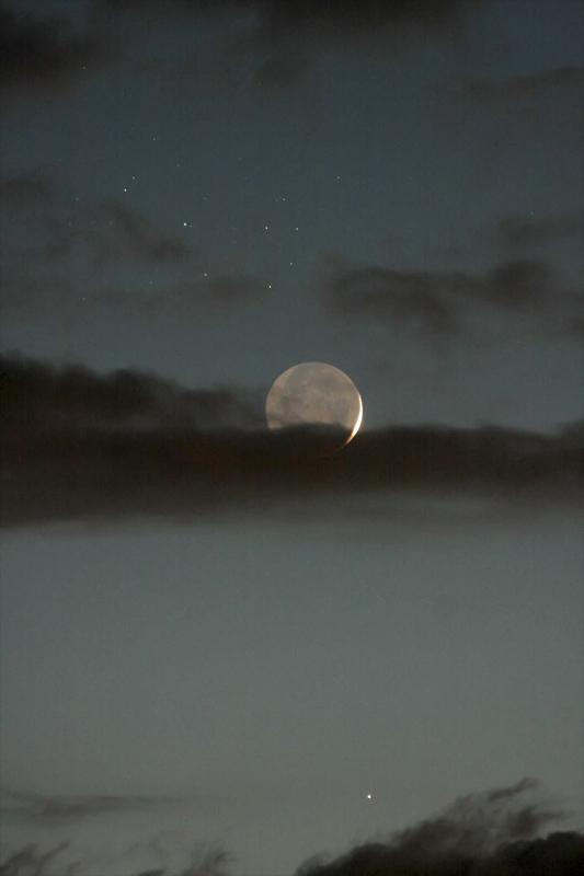 Last Sunday's fading evening twilight featured a young crescent Moon