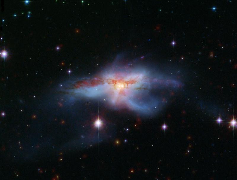 NGC 6240 offers a rare glimpse of a cosmic catastrophe in its