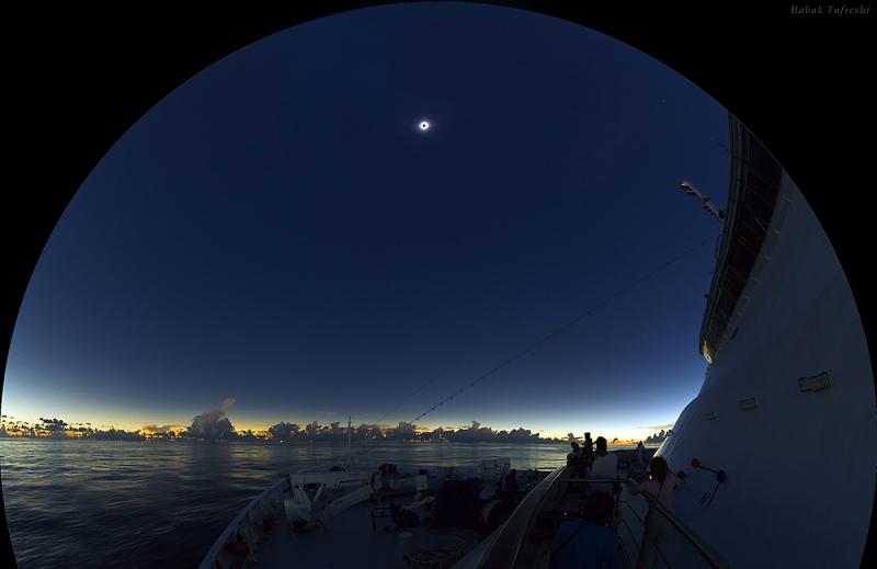 across the Pacific Ocean, the Moon completely blocked the Sun