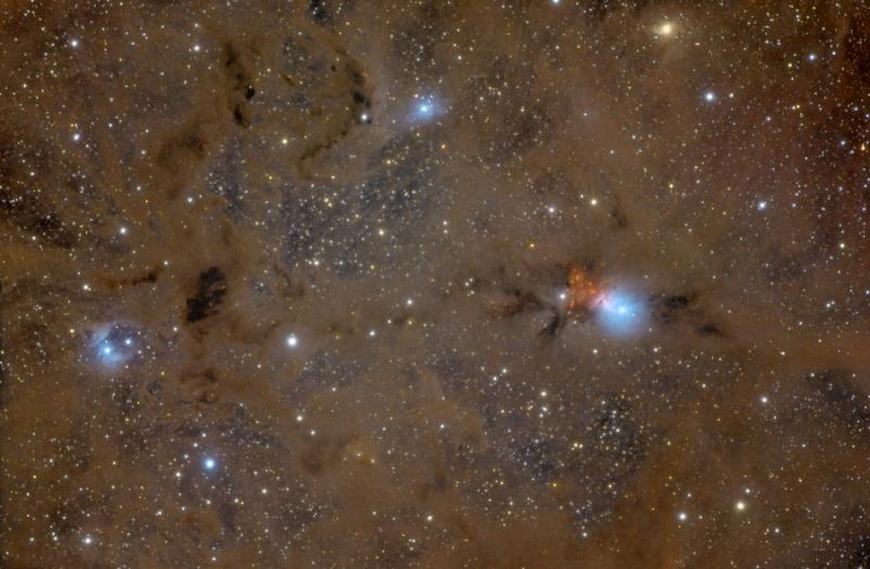 Next to NGC 1333 is the reddish glow of shocked hydrogen gas created