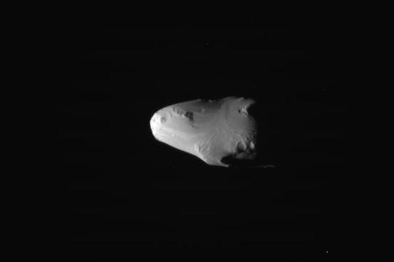 Pictured above is an early return, raw, unprocessed image of the 20-km long irregularly shaped moon.