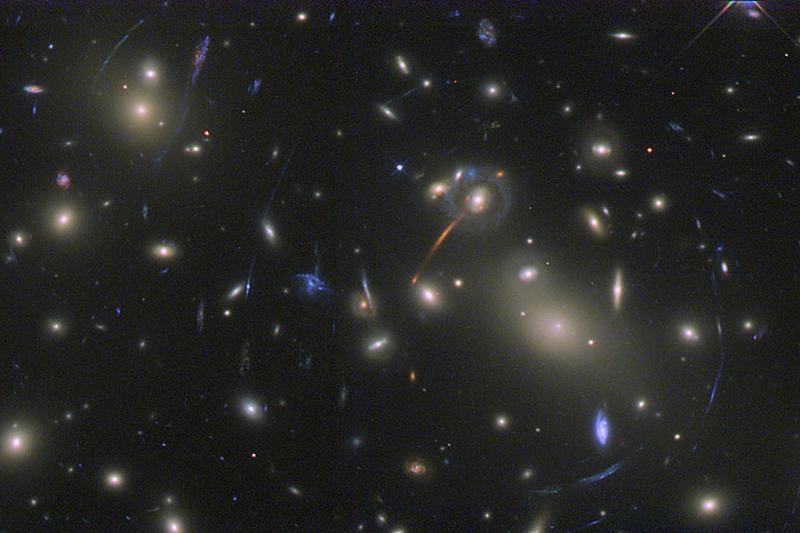 to act as telescopes, and distorting images of background galaxies into elongated strands.