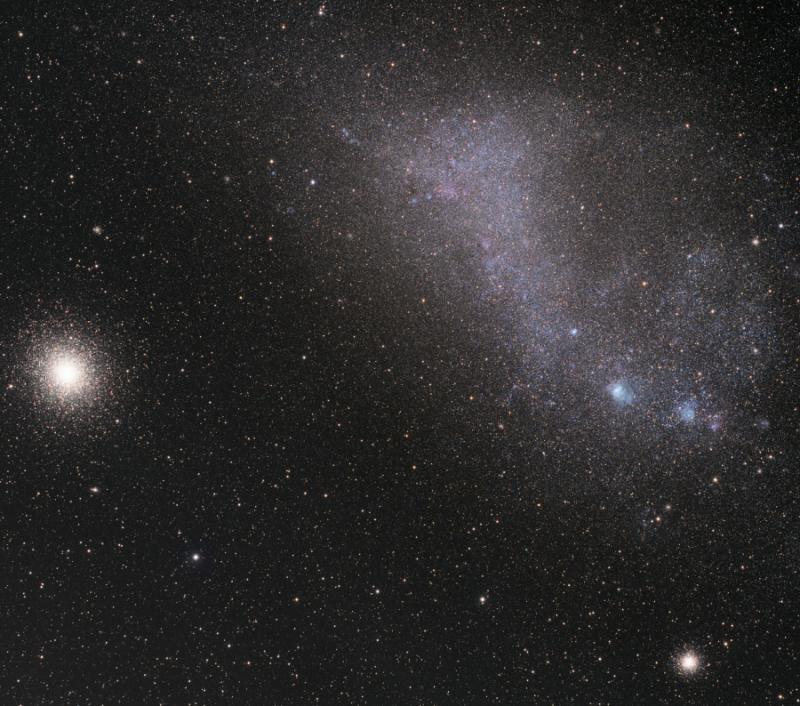 star clusters NGC 362 (bottom right) and 47 Tucanae.