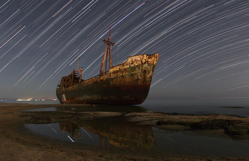aground on a beach near Gytheio, Peloponnesus in southern Greece.