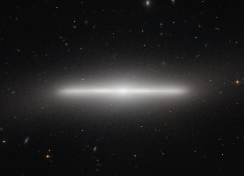 In one of the more precise alignments known in the universe, what is pictured above is actually a disk galaxy being seen almost perfectly edge on.