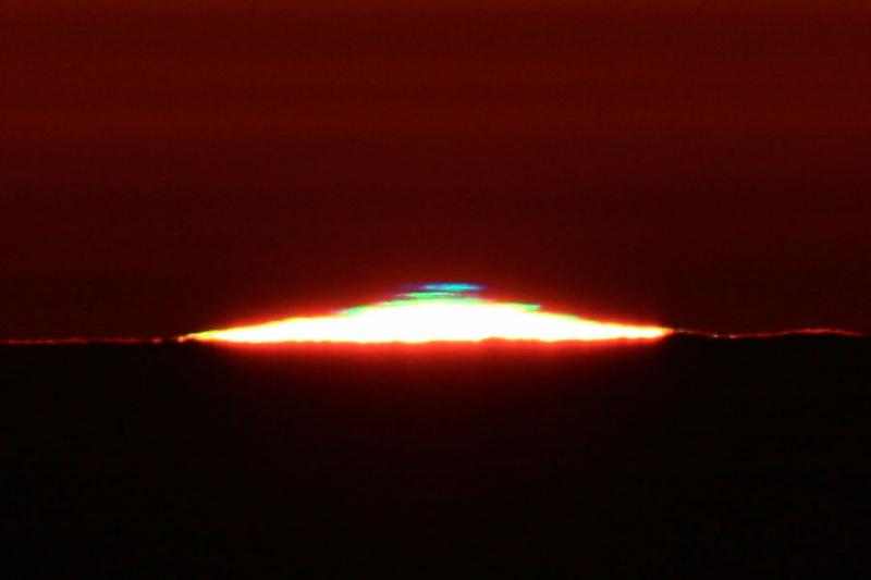 . The effect is typically visible only from locations with a low, distant horizon, and lasts just a few seconds. A