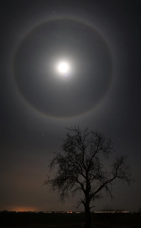 wintry sky creating this gorgeous lunar halo.