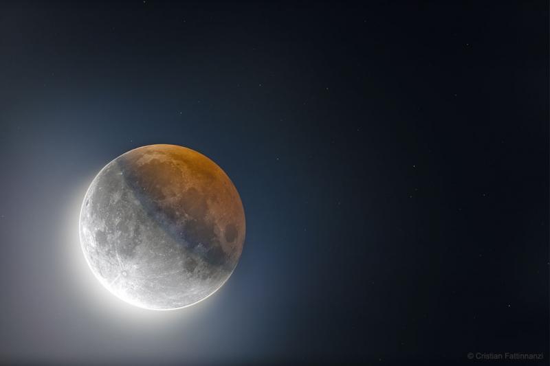 What could create such a large circular shadow on the Moon? The Earth. Last week's full Moon -- the Buck Moon -- was so full that it fell almost exactly in a line with the Sun and the Earth. When that happens the Earth casts its shadow onto the Moon. The circularity of the Earth's shadow on the Moon was commented on by Aristotle and so has been noticed since at least the 4th century BC. What's new is humanity's ability to record this shadow with such high dynamic range (HDR). The featured HDR composite of last week's partial lunar eclipse combines 15 images and include an exposure as short as 1/400th of a second -- so as not to overexpose the brightest part -- and an exposure that lasted five seconds -- to bring up the dimmest part. This dimmest part -- inside Earth's umbra -- is not completely dark because some light is refracted through the Earth's atmosphere onto the Moon. A total lunar eclipse will occur next in 2021 May. Partial Lunar Eclipse in 2019 July: Some memorable images submitted to APOD