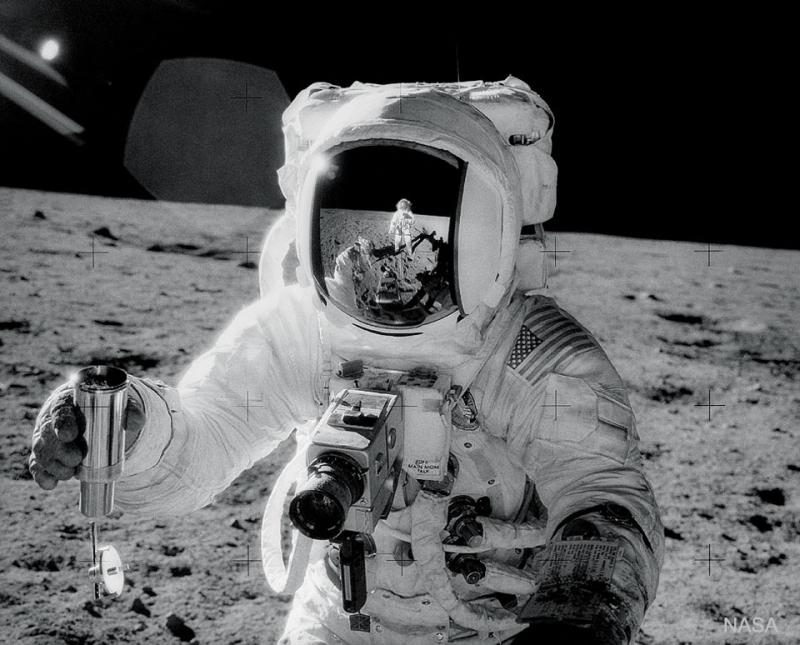 Is this image art? 50 years ago, Apollo 12 astronaut-photographer Charles "Pete" Conrad recorded this masterpiece while documenting colleague Alan Bean's lunar soil collection activities on Oceanus Procellarum. The featured image is dramatic and stark. The harsh environment of the Moon's Ocean of Storms is echoed in Bean's helmet, a perfectly composed reflection of Conrad and the lunar horizon. Works of photojournalists originally intent on recording the human condition on planet Earth, such as Lewis W. Hine's images from New York City in the early 20th century, or Margaret Bourke-White's magazine photography are widely regarded as art. Similarly many documentary astronomy and space images might also be appreciated for their artistic and esthetic appeal.