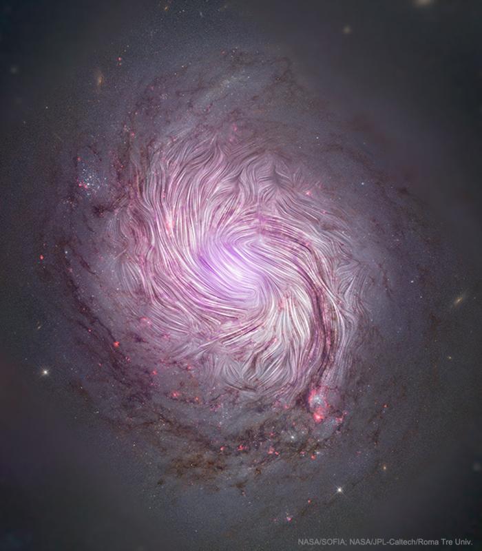 Can magnetic fields help tell us how spiral galaxies form and evolve? To find out, the HAWC+ instrument on NASA's airborne (747) SOFIA observatory observed nearby spiral galaxy M77. HAWC+ maps magnetism by observing polarized infrared light emitted by elongated dust grains rotating in alignment with the local magnetic field. The HAWC+ image shows that magnetic fields do appear to trace the spiral arms in the inner regions of M77, arms that likely highlight density waves in the inflowing gas, dust and stars caused by the gravity of the galaxy's oval shape. The featured picture superposes the HAWC+ image over diffuse X-ray emission mapped by NASA's NuSTAR satellite and visible light images taken by Hubble and the SDSS. M77 is located about 47 million light years away toward the constellation of the Sea Monster (Cetus).