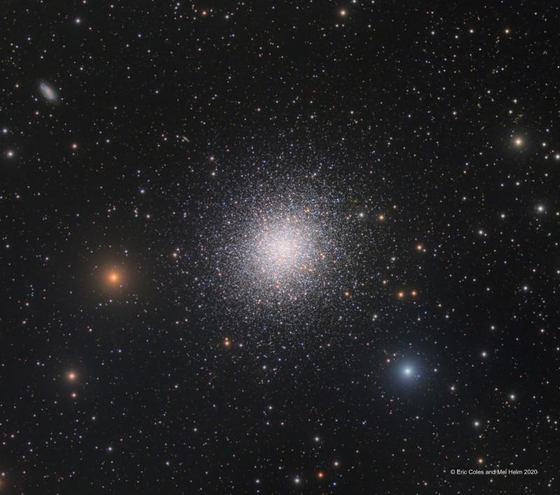 In 1716, English astronomer Edmond Halley noted, "This is but a little Patch, but it shews itself to the naked Eye, when the Sky is serene and the Moon absent." Of course, M13 is now less modestly recognized as the Great Globular Cluster in Hercules, one of the brightest globular star clusters in the northern sky. Sharp telescopic views like this one reveal the spectacular cluster's hundreds of thousands of stars. At a distance of 25,000 light-years, the cluster stars crowd into a region 150 light-years in diameter. Approaching the cluster core upwards of 100 stars could be contained in a cube just 3 light-years on a side. For comparison, the closest star to the Sun is over 4 light-years away. The remarkable range of brightness recorded in this image follows stars into the dense cluster core and reveals three subtle dark lanes forming the apparent shape of a propeller just below and slightly left of center. Distant background galaxies in the medium-wide field of view include NGC 6207 at the upper left.