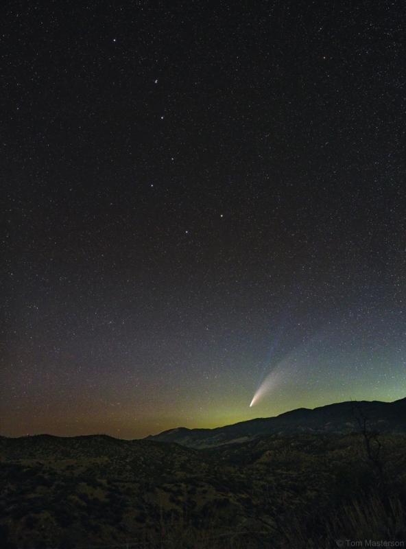 If you can see the stars of the Big Dipper, you can find comet NEOWISE in your evening sky tonight. After sunset look for the naked-eye comet below the bowl of the famous celestial kitchen utensil of the north and above your northwestern horizon. You're looking for a fuzzy 'star' with a tail, though probably not so long a tail as in this clear sky snapshot taken from Los Padres National Forest in California on the evening of July 16. Recent photographs of C/2020 F3 (NEOWISE) often show this comet's broad dust tail and fainter but separate ion tail extending farther than the eye can follow. Skygazers around the world have been delighted to find NEOWISE, surprise visitor from the outer Solar System. Comet NEOWISE Images: July 17 | July 16 | July 15 | July 14 | July 13 | July 12 | July 11 | July 10 & earlier