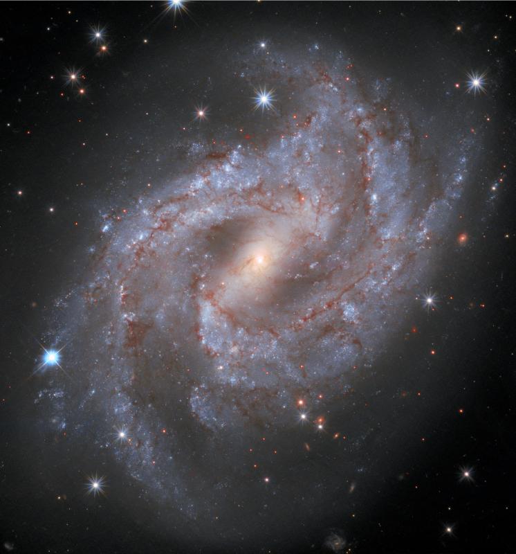 Big, beautiful, barred spiral galaxy NGC 2525 lies 70 million light-years from the Milky Way. It shines in Earth's night sky within the boundaries of the southern constellation Puppis. About 60,000 light-years across, its spiral arms lined with dark dust clouds, massive blue stars, and pinkish starforming regions wind through this gorgeous Hubble Space Telescope snapshot. Spotted on the outskirts of NGC 2525 in January 2018, supernova SN 2018gv is the brightest star in the frame at the lower left. In time-lapse, a year long series of Hubble observations followed the stellar explosion, the nuclear detonation of a white dwarf star triggered by accreting material from a companion star, as it slowly faded from view. Identified as a Type Ia supernova, its brightness is considered a cosmic standard candle. Type Ia supernovae are used to measure distances to galaxies and determine the expansion rate of the Universe.