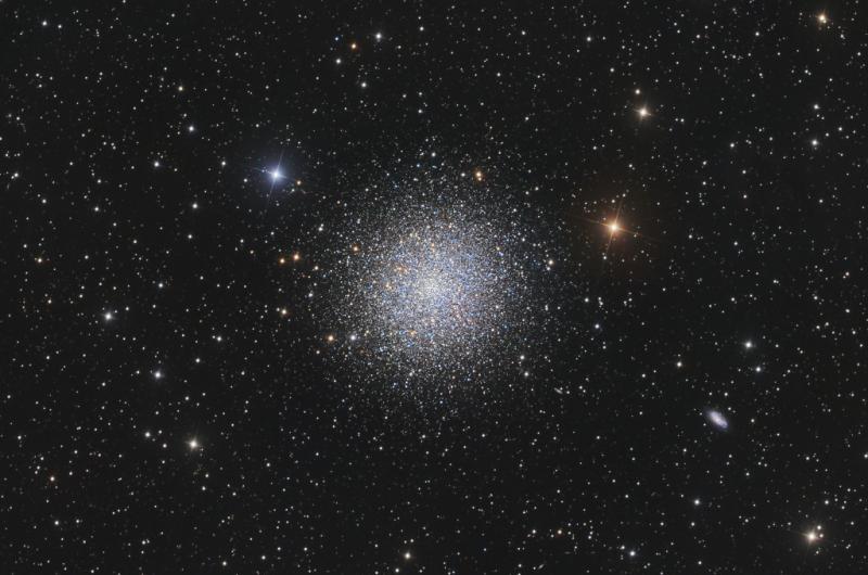 In 1716, English astronomer Edmond Halley noted, "This is but a little Patch, but it shews itself to the naked Eye, when the Sky is serene and the Moon absent." Of course, M13 is now less modestly recognized as the Great Globular Cluster in Hercules, one of the brightest globular star clusters in the northern sky. Sharp telescopic views like this one reveal the spectacular cluster's hundreds of thousands of stars. At a distance of 25,000 light-years, the cluster stars crowd into a region 150 light-years in diameter. Approaching the cluster core upwards of 100 stars could be contained in a cube just 3 light-years on a side. For comparison, the closest star to the Sun is over 4 light-years away. The remarkable range of brightness recorded in this image follows stars into the dense cluster core. Distant background galaxies in the medium-wide field of view include NGC 6207 at the lower right.