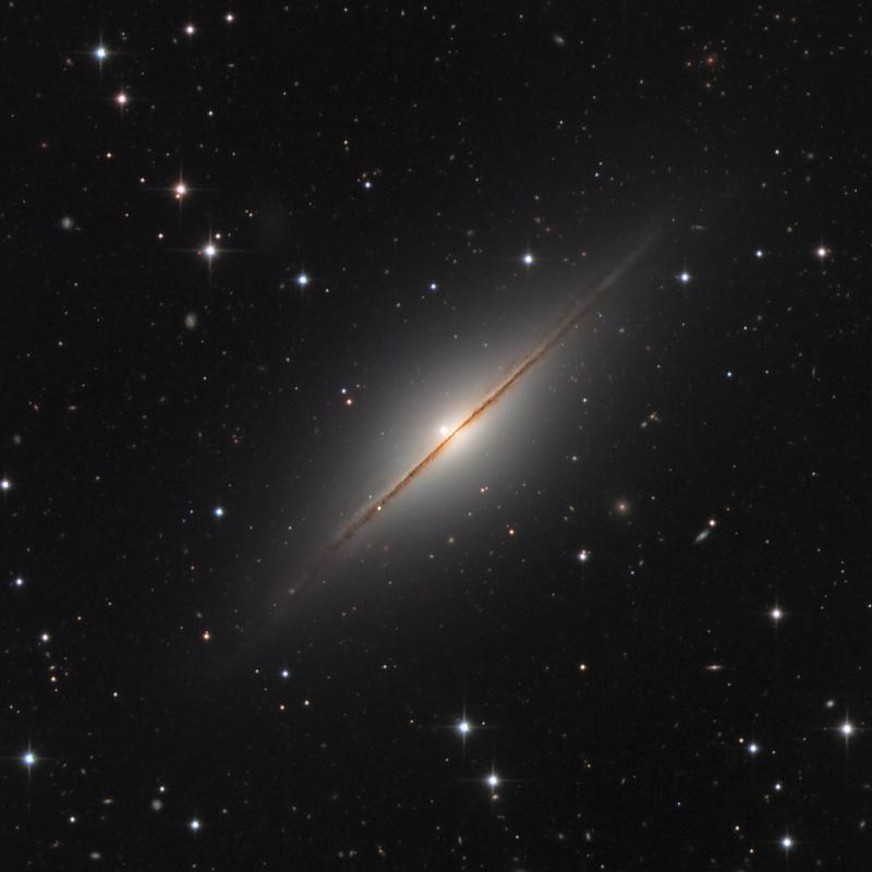 Point your telescope toward the high flying constellation Pegasus and you can find this expanse of Milky Way stars and distant galaxies. NGC 7814 is centered in the pretty field of view that would almost be covered by a full moon. NGC 7814 is sometimes called the Little Sombrero for its resemblance to the brighter more famous M104, the Sombrero Galaxy. Both Sombrero and Little Sombrero are spiral galaxies seen edge-on, and both have extensive halos and central bulges cut by a thin disk with thinner dust lanes in silhouette. In fact, NGC 7814 is some 40 million light-years away and an estimated 60,000 light-years across. That actually makes the Little Sombrero about the same physical size as its better known namesake, appearing smaller and fainter only because it is farther away. In this telescopic view from July 17, NGC 7814 is hosting a newly discovered supernova, dominant immediately to the left of the galaxy's core. Cataloged as SN 2021rhu, the stellar explosion has been identified as a Type Ia supernova, useful toward calibrating the distance scale of the universe.
