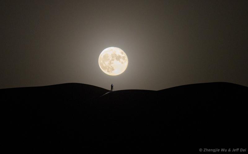 A photographer in silhouette stands in bright moonlight as the Full Moon rises in this well-planned telephoto image. Of course, the Full Moon is normally the brightest lunar phase. But on November 18/19, the Full Moon's light will be dimmed during a deep partial lunar eclipse seen across much of planet Earth. At maximum eclipse only a few percent of the lunar disk's diameter should remain outside the Earth's dark umbral shadow when the Moon slides close to the shadow's southern edge. Near apogee, the farthest point in its orbit, the Moon's motion will be slow. That should make this second lunar eclipse of 2021 an exceptionally long partial lunar eclipse. For most of North America the eclipse partial phases will be visible in predawn hours. Since eclipses tend to come in pairs, this lunar eclipse will be followed by a solar eclipse in two weeks on December 4.