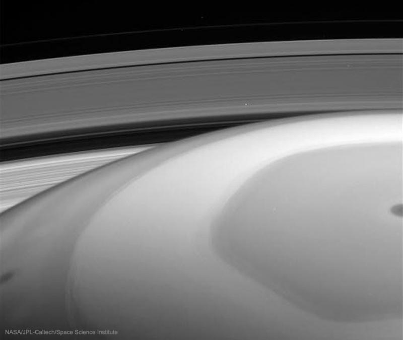 This is what Saturn looks like from inside the rings. In 2017, for the first time, NASA directed the Cassini spacecraft to swoop between Saturn and its rings. During the dive, the robotic spacecraft took hundreds of images showing unprecedented detail for structures in Saturn's atmosphere. Looking back out, however, the spacecraft was also able to capture impressive vistas. In the featured image, taken a few hours before closest approach, Saturn's unusual northern hexagon is seen surrounding the North Pole. Saturn's B ring is the closest visible, while the dark Cassini Division separates B from the outer A. A close inspection will find the two small moons that shepherd the F-ring, the farthest ring discernable. A few months after this image was taken -- and after more than a decade of exploration and discovery -- the Cassini spacecraft ran low on fuel and was directed to enter Saturn's atmosphere, where it surely melted.