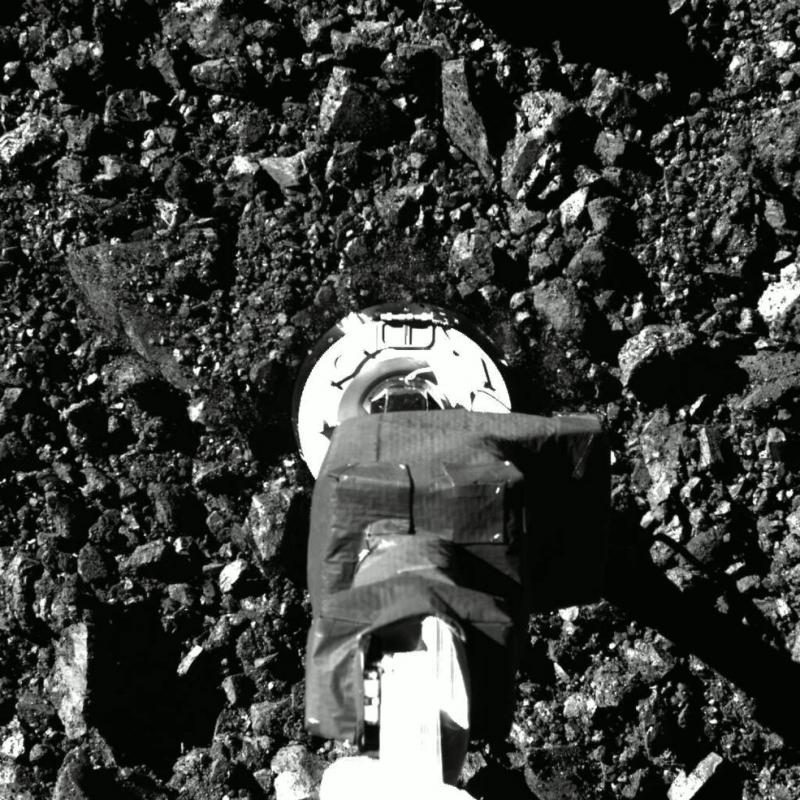 The OSIRIS-REx spacecraft's arm reached out and touched asteroid 101955 Bennu on October 20, 2020, after a careful approach to the small, near-Earth asteroid's boulder-strewn surface. Dubbed a Touch-And-Go (TAG) sampling event, the 30 centimeter wide sampling head (TAGSAM) appears to crush some of the rocks in this close-up recorded by the spacecraft's SamCam. The image was snapped just after surface contact some 321 million kilometers from planet Earth. One second later, the spacecraft fired nitrogen gas from a bottle intended to blow a substantial amount of Bennu's regolith into the sampling head, collecting the loose surface material. And now, nearly three years later, on Sunday, September 24, that sample of asteroid Bennu is scheduled to arrive on planet Earth. The sample return capsule will be dropped off by the OSIRIS-Rex spacecraft as it makes a close flyby of Earth. Twenty minutes after the drop-off, the spacecraft will fire its thrusters to divert past Earth and continue on to orbit near-Earth asteroid 99942 Apophis.