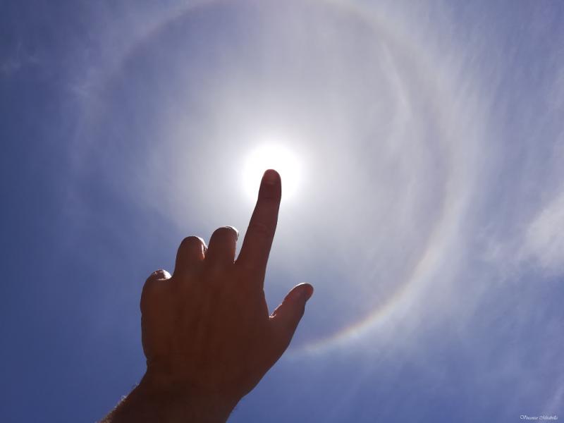 Want to see a ring around the Sun? It's easy to do in daytime skies around the world. Created by randomly oriented ice crystals in thin high cirrus clouds, circular 22 degree halos are visible much more often than rainbows. This one was captured by smart phone photography on May 29, 2021 near Rome, Italy. Carefully blocking the Sun, for example with a finger tip, is usually all that it takes to reveal the common bright halo ring. The halo's characteristic angular radius is about equal to the span of your hand, thumb to little finger, at the end of your outstretched arm. Want to see a ring of fire eclipse? That's harder. The spectacular annular phase of today's (October 14) solar eclipse, known as a ring of fire, is briefly visible only when standing along the Moon's narrow shadow track that passes over limited parts of North, Central, and South America. The solar eclipse is partial though, when seen from broader regions throughout the Americas.