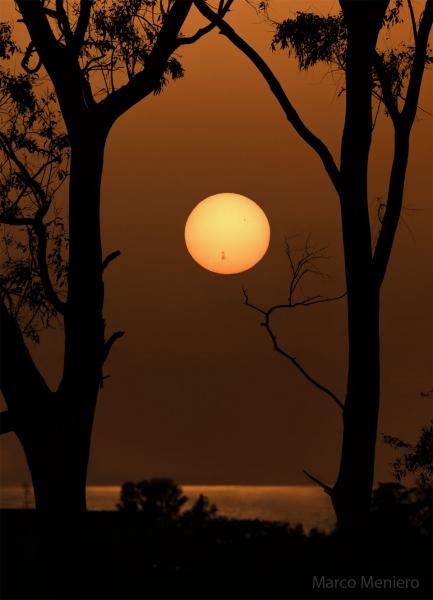 It was larger than the Earth. It was so big you could actually see it on the Sun's surface without magnification. It contained powerful and tangled magnetic fields as well as numerous dark sunspots. Labelled AR 3664, it developed into one of the most energetic areas seen on the Sun in recent years, unleashing a series of explosions that led to a surge of energetic particles striking the Earth, which created beautiful auroras. And might continue. Although active regions on the Sun like AR 3664 can be quite dangerous, this region's Coronal Mass Ejections have not done, as yet, much damage to Earth-orbiting satellites or Earth-surface electrical grids. Pictured, the enormous active region was captured on the setting Sun a few days ago from Civitavecchia, Rome, Italy. The composite image includes a very short exposure taken of just the Sun's surface, but mimics what was actually visible. Finally, AR 3664 is now rotating away from the Earth, although the region may survive long enough to come around again. Gallery: Earth Aurora from Solar Active Region 6443