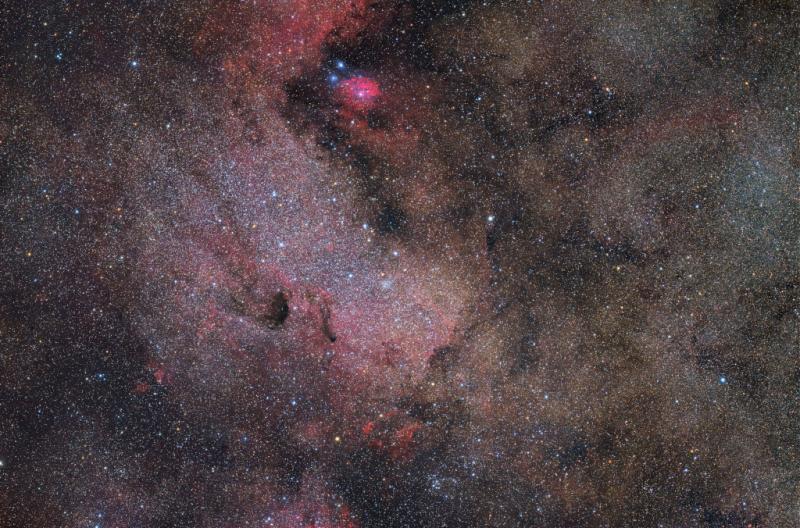 Unlike most entries in Charles Messier's famous catalog of deep sky objects, M24 is not a bright galaxy, star cluster, or nebula. It's a gap in nearby, obscuring interstellar dust clouds that allows a view of the distant stars in the Sagittarius spiral arm of our Milky Way galaxy. Direct your gaze through this gap with binoculars or small telescope and you are looking through a window over 300 light-years wide at stars some 10,000 light-years or more from Earth. Sometimes called the Small Sagittarius Star Cloud, M24's luminous stars are left of center in this gorgeous starscape. Covering over 6 degrees or the width of 12 full moons in the constellation Sagittarius, the telescopic field of view includes dark markings B92 and B93 near the center of M24, along with other clouds of dust and glowing nebulae toward the center of the Milky Way.