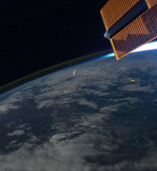 Denizens of planet Earth typically watch meteor showers by looking up. But this remarkable view, captured on August 13, 2011 by astronaut Ron Garan, caught a Perseid meteor by looking down. From Garan's perspective on board the International Space Station orbiting at an altitude of about 380 kilometers, the Perseid meteors streak below, swept up dust from comet Swift-Tuttle. The vaporizing comet dust grains are traveling at about 60 kilometers per second through the denser atmosphere around 100 kilometers above Earth's surface. In this case, the foreshortened meteor flash is near frame center, below the curving limb of the Earth and a layer of greenish airglow, just below bright star Arcturus. Want to look up at a meteor shower? You're in luck, as the 2024 Perseid meteor shower is active now and predicted to peak near August 12. With interfering bright moonlight absent, this year you'll likely see many Perseid meteors under clear, dark skies after midnight.
