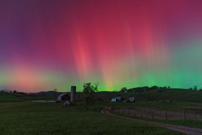 A gravel country lane gently winds through this colorful rural night skyscape. Captured from Monroe County in southern West Virginia on the evening of October 10, the starry sky above is a familiar sight. Shimmering curtains of aurora borealis or northern lights definitely do not make regular appearances here, though. Surprisingly vivid auroral displays were present on that night at very low latitudes around the globe, far from their usual northern and southern high latitude realms. The extensive auroral activity was evidence of a severe geomagnetic storm triggered by the impact of a coronal mass ejection (CME), an immense magnetized cloud of energetic plasma. The CME was launched toward Earth from the active Sun following a powerful X-class solar flare. Growing Gallery: Global aurora during October 10/11, 2024