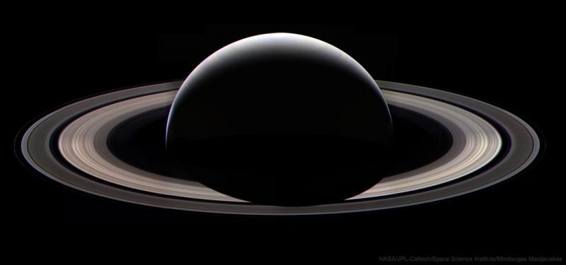 Saturn is bright in Earth's night skies. Telescopic views of the outer gas giant planet and its beautiful rings often make it a star at star parties. But this stunning view of Saturn's rings and night side just isn't possible from telescopes in the vicinity of planet Earth. Peering out from the inner Solar System they can only bring Saturn's day side into view. In fact, this image of Saturn's slender sunlit crescent with night's shadow cast across its broad and complex ring system was captured by the Cassini spacecraft. A robot spacecraft from planet Earth, Cassini called Saturn orbit home for 13 years before it was directed to dive into the atmosphere of the gas giant on September 15, 2017. This magnificent mosaic is composed of frames recorded by Cassini's wide-angle camera only two days before its grand final plunge. Saturn's night will not be seen again until another spaceship from Earth calls.