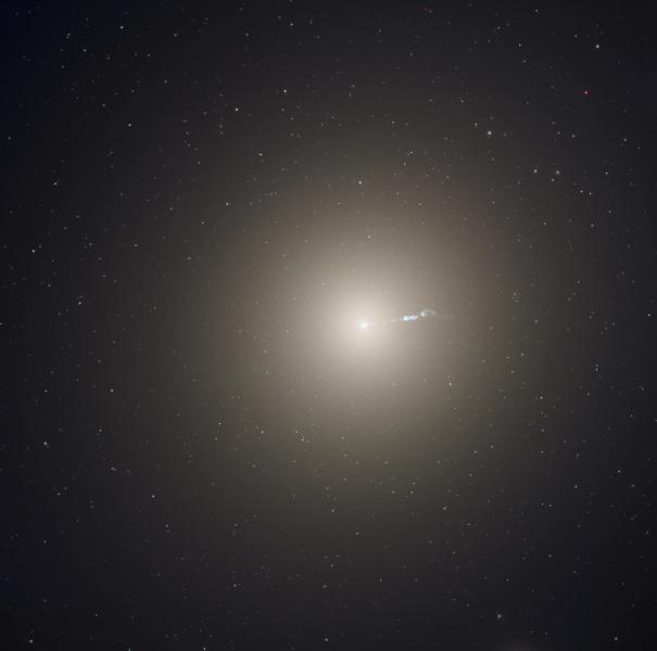 rmous elliptical galaxy Messier 87 is about 50 million light-years away. Also known as NGC 4486, the giant galaxy holds trillions of stars compared to the mere billions of stars in our large spiral Milky Way. M87 reigns as the large central elliptical galaxy in the Virgo galaxy cluster. An energetic jet from the giant galaxy's core is seen to stretch outward for about 5,000 light-years in this sharp optical and near-infrared view from the Hubble Space Telescope. In fact, the cosmic blow torch is seen across the electromagnetic spectrum from gamma-rays to radio wavelengths. Its ultimate power source is M87's central, supermassive black hole. An image of this monster in the middle of M87 has been captured by planet Earth's Event Horizon Telescope.