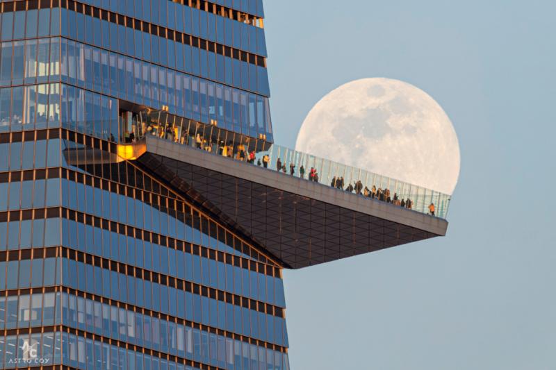 Most of us watch the Moon at night. But the Moon spends nearly as many daylight hours above our horizon, though in bright daytime skies the lunar disk looks pale and can be a little harder to see. Of course in daytime skies the Moon also appears to cycle through its phases, shining by reflected sunlight as it orbits our fair planet. For daytime moonwatchers, the Moon is probably easier to spot when the visible sunlit portion of the lunar disk is large and waxing following first quarter or waning approaching its third quarter phase. And though it might look unusual, a daytime moon is often seen even in urban skies. Captured here in a telephoto snapshot taken on March 12, a waxing daytime Moon is aligned near the edge of a popular observation deck that overlooks New York City's borough of Manahattan.