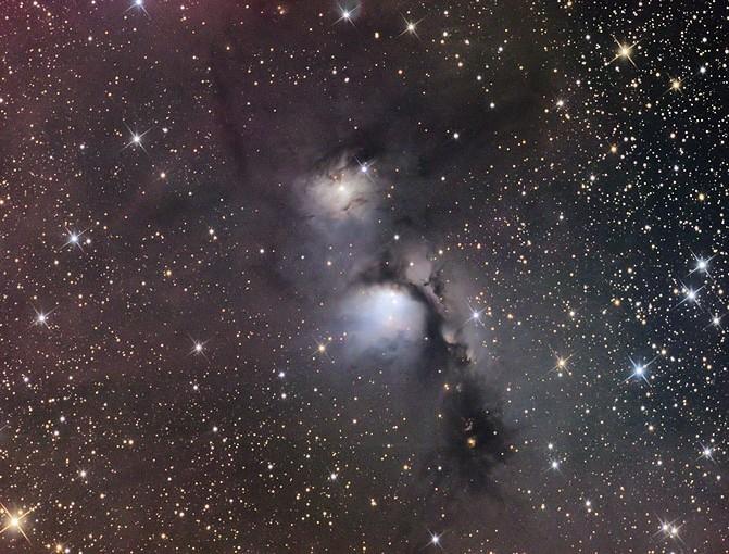 of hot, young stars in the region. Dark dust lanes and other nebulae can easily be traced through this gorgeous skyscape that