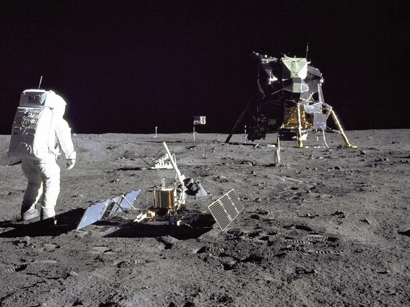 Explanation: Why are there so many moonquakes? A recent reanalysis of seismometers left on the moon by the Apollo moon landings has revealed a surprising number of moonquakes occurring within 30 kilometers of the surface. In fact, 28 moonquakes were detected in data recorded between 1972 and 1977. These moonquakes were not only strong enough to move furniture but the stiff rock of the moon continued vibrating for many minutes, significantly longer than the soft rock earthquakes on Earth. The cause of the moonquakes remains unknown, with one hypothesis holding that landslides in craters cause the vibrations. Regardless of the source, future moon buildings need to be built to withstand the frequent shakings. Pictured above in 1969, Apollo 11 astronaut Buzz Aldrin stands besides a recently deployed lunar seismometer, looking back toward the lunar landing module.