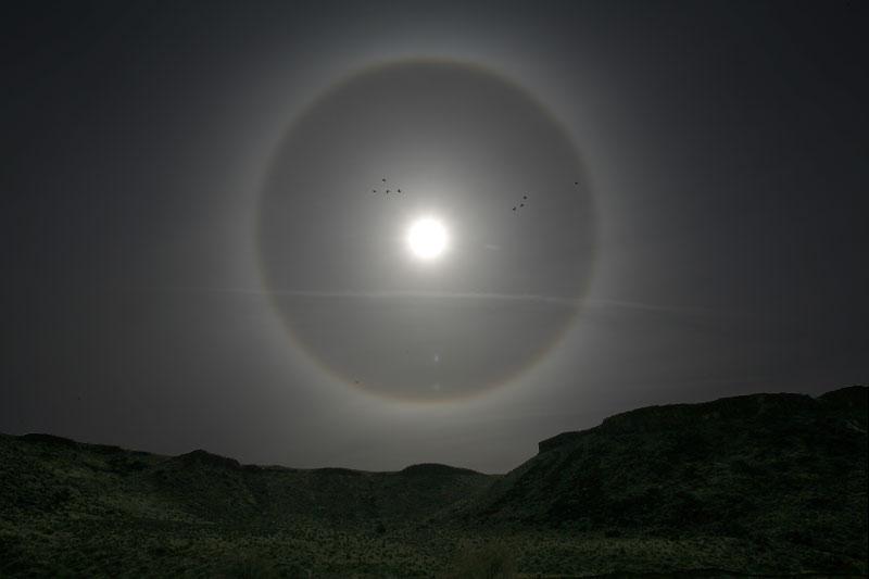 This fairly common sight occurs when high thin clouds containing millions of tiny