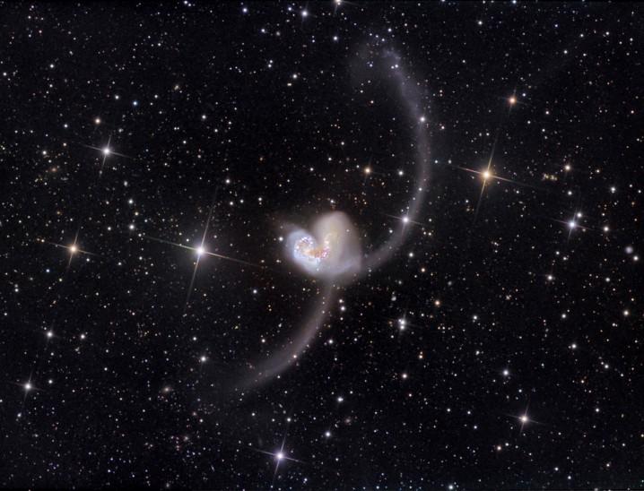 galaxy NGC 4038S, formed in the cosmic debris.