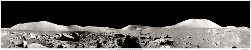 Explanation: What would it be like to explore the surface of another world? In 1972 during the Apollo 17 mission, astronaut Harrison Schmitt found out first hand. In this case, the world was Earth's own Moon. In this recently compiled panorama of lunar photographs originally taken by astronaut Eugene Cernan, the magnificent desolation of the barren Moon is apparent. Visible above and by scrolling right are lunar rocks in the foreground, lunar mountains in the background, some small craters, a lunar rover, and astronaut Schmidt on his way back to the rover. A few days after this image was taken, humanity left the Moon and has yet to return.