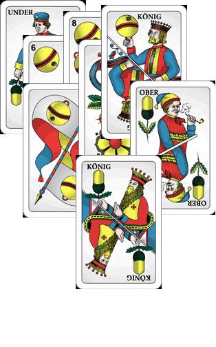 Das Ziel ist es, die Jasskarten vor allen anderen Mitspielern wegzubringen.