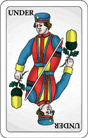 Als wir dann so da sassen und nicht mehr wussten ĂŒber was wir reden sollten, kamen wir auf die revolutionĂ€re Idee, ein bisschen zu jassen. Ich dazumals, kannte nur billige Kartenspiele wie "HosĂ€abĂ€ und ArschlöchlĂ€" Und weil man diesen Mist eh nicht zu zweit spielen kann, beschlossen wir unseren eigenen Jass zu erfinden. Als erstes legten wir mal alle Karten auf den Tisch. Als wir die zum Teil recht kaputten Fressen so ansahen, fiel uns auf dass ein paar von denen am rauchen sind und weil wir beide ĂŒberzeugte Raucher sind, erklĂ€hrten wir die Rauchenden nichtbartbesitzer in der Kartenhirarchie zu den höchsten. Folglich sind darum die Nichtraucher die tiefsten.