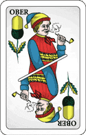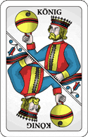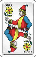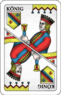 Das einzige Probelem das wir jetzt noch hatten war, dass ese nicht gleich viel Raucher gibt wie Nichtraucher. Daher beschlossen wir den Nichtraucher mit dem langen Bart (der Eichel-König) an die Spitze zu setzen (ja, sogar ĂŒber den Rauchern). Jetzt war nur noch einer dieser Nichtraucher zuviel. Zum GlĂŒck gibt es nur zwei Nichtraucher die einen Bart am wachsen haben. Der 2. ist der Schellen-König. Weil er so schön dem heiligen Jesus gleicht, tauften wir ihn so und setzten ihn zwischen die Asse und die Raucher. Der oberste langbĂ€rtige brauchte auch noch einen Namen. Broggini meinte dann, er gleiche so schön dem Peter Steiner und so tauften wir ihn schlussendlich auch auf den Namen Peter.